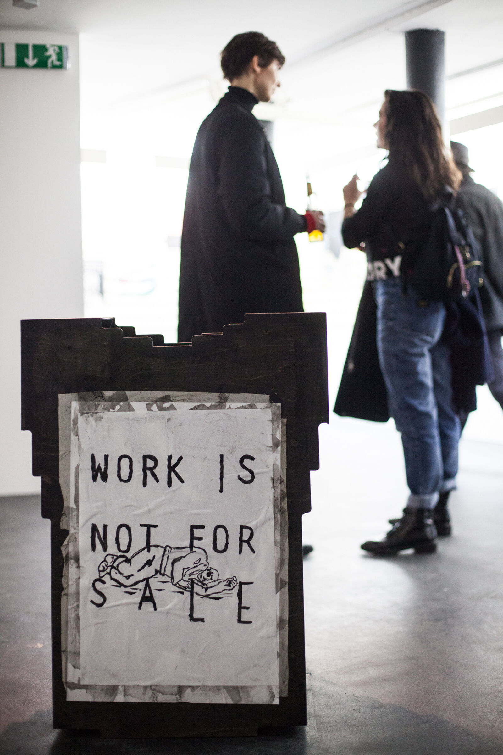 Tamás Kaszás answers these self-formulated questions by imagining do-it-yourself techniques for survival. Sculptures that could be recognized as functional objects, together with graphic material like posters and flyers, speculate on questions of collective and solidarity-driven survival techniques for the future.