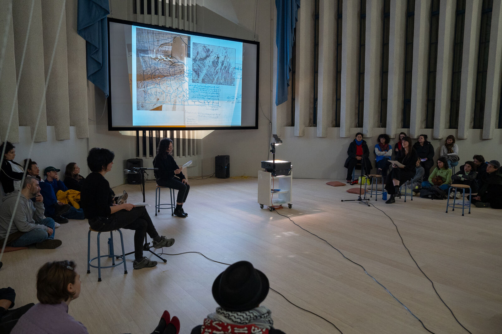 Siwar met Alev, Betül and Hanieh on a screen in 2023, as part of their current participation in BAK's Fellowship for Situated Practice. Soon after, they formed a gathering called ‘Yaani’ inspired by the common word in colloquial Arabic and Turkish. Alev and Betül will be performing with Siwar about belonging, alienation, and familiarity as part of their ongoing discussion around language. Hanieh's voice will accompany them through a remote yet close proximity.