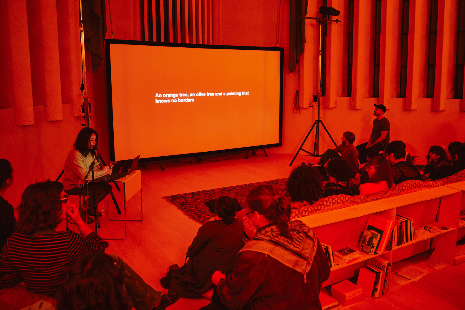 In the Amsterdam iteration, the instructions will be presented, whereas some of them will be activated throughout the coming weeks. Every week of the presentation span, a new video by the participating artists and others will be screened on loop for one full exhibition week. In addition a programme of performances, workshops and gatherings will take place throughout the project span. The lecture-performance An orange tree, an olive tree and a paintings that knows no borders by Noor Abuarafeh is part of this program.