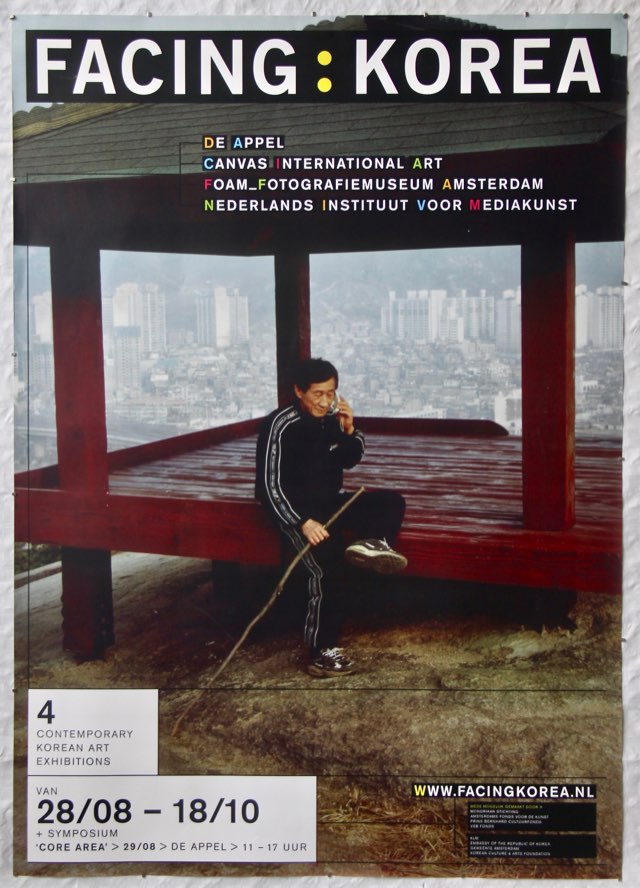 ‘Demirrorized Zone is an exhibition that touches on culture-critical aspects of contemporary Korean art. A young generation of Korean artists particularly see art as a ‘temporary autonomous zone’: a space for free imagination which feels no obligation to adhere uncritically to the two available systems- the traditional Confucianism and the contemporary dictate of globalism – but in which it is possible to think critically about the way the two models construct identity. It appears that recognition for the imagination is demanded, without resorting to a glorification of local phenomena. The work by the artist couple Young-Hae Chang Heavy Industries shows ironically how the separation of Korea determines the collective mind and Korean thought and imagination. Despite the pressure from present political developments and local initiatives toward approach and reconciliation, the Korean reality of inner conflict and division is still not open to public discussion. Park Chan-kyong’s installation called Set shows film sets in North Korea which represent South Korea. The sets are usually deployed for shooting propaganda movies showing how Seoul would look after a North Korean attack and subsequent victory. Yang Hae-gue situates everyday, local elements from Korea such as chairs, tables and other natural interior objects in a Western context, home suddenly becomes alienating. Ambiguous zone emerges, where new vistas open up the otherness of self. Demarcations between private and public, individual and community, in short, all oppositions determining a cultural system previously taken for granted now appear to have been entirely randomly selected. Ham Jin deploys an iconography of innocence in the form of the sweet world of children's toys. Stuffed plush animals doomed to the unexpectedly perverse confines of steel cages, are there to provoke a more tortuous understanding of the relationship between the space and the object. Kim Sang-gil investigates in the form of billboard-like photographs how the reality of a commercial iconography makes the original Korean landscape unreal, the freedom of imagination is homogenized by standardization, and autonomy disappears from everyday life. Jung Yeon-doo offers ordinary people the opportunity to withdraw from the dullness of the collective system. True, they seem to largely have merged with the system, but they are still able to dream undisturbed about their identity. For example, when they imagine themselves to be the heroes in the world of the ballroom. The special composed video zone will pursue the matter on dynamic changes in the Korean society. Artists: Koo Dong-hee, Yoon Mi-yeon, Kim Se-jin, Ham Yang-ah.’ August 29, De Appel: symposium Core Area. Theme: ‘reflecting on contemporary Asian art and the relationship between geographical locality and identity’. Moderators: Saskia Bos (director De Appel, Amsterdam) / Sebastian Lopez (director Gate Foundation) / Henk Slager (co-curator Demirrorized Zone). Speakers: Manu Park, (director exhibitions Gwangju Biennial, curator Busan Biennial, 2004), Hans Ulrich Obrist (curator, a.o. Cities on the Move, Utopia Station), Boudewijn Walraven (professor Korean studies, Leiden University), Kim Hong-Hee (director Ssamzie Space, curator Korean Pavilion, Venice 2003), Mark Kremer (curator, The Postman is a Genius, NIM), Beck Jee-Sook (curator Marronnier Art Center, Seoul), Flyingcity (artists), Young June Lee (art critic, curator, Seoul), Hou Hanru (curator, a.o. Zone of Urgency), Young-hae Chang Heavy Industries (artists) and Park Chan-kyong (artist). (Press release De Appel) Catalogues: Facing : Korea. Korean Contemporary Art 2003, 2003. Canvas International Art / De Appel / Foam Fotografiemuseum Amsterdam / Netherlands Media Art Institute, Montevideo/Time Based Arts. Text: H.E. Ohm Keun-seop, Saskia Bos, Heiner Holtappels, Martijn Kielstra, Marloes Krijnen, Lee Young-chul, Beck Jee-sook. English & Dutch. 272 pp. Soft cover. Design: Kim Kyu-bum. ISBN 89 953654 3 9 04650. € 15,- In or Out. Dutch Contemporary Art 2003, 2003. Gallery 7 / National Museum of Contemporary Art, Korea. Text: Hein de Vries, Oh Kwang-Su, Yun Chegab, Martijn Kielstra. English & Korean. 239 pp. Soft cover. Design: Kim Kyu-bum. ISBN 89 953654 2 0 04650. € 15,- Set price: € 25,-