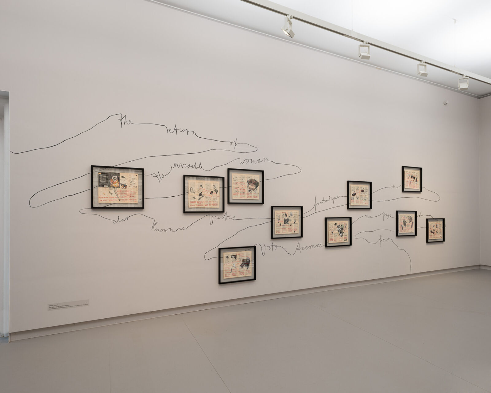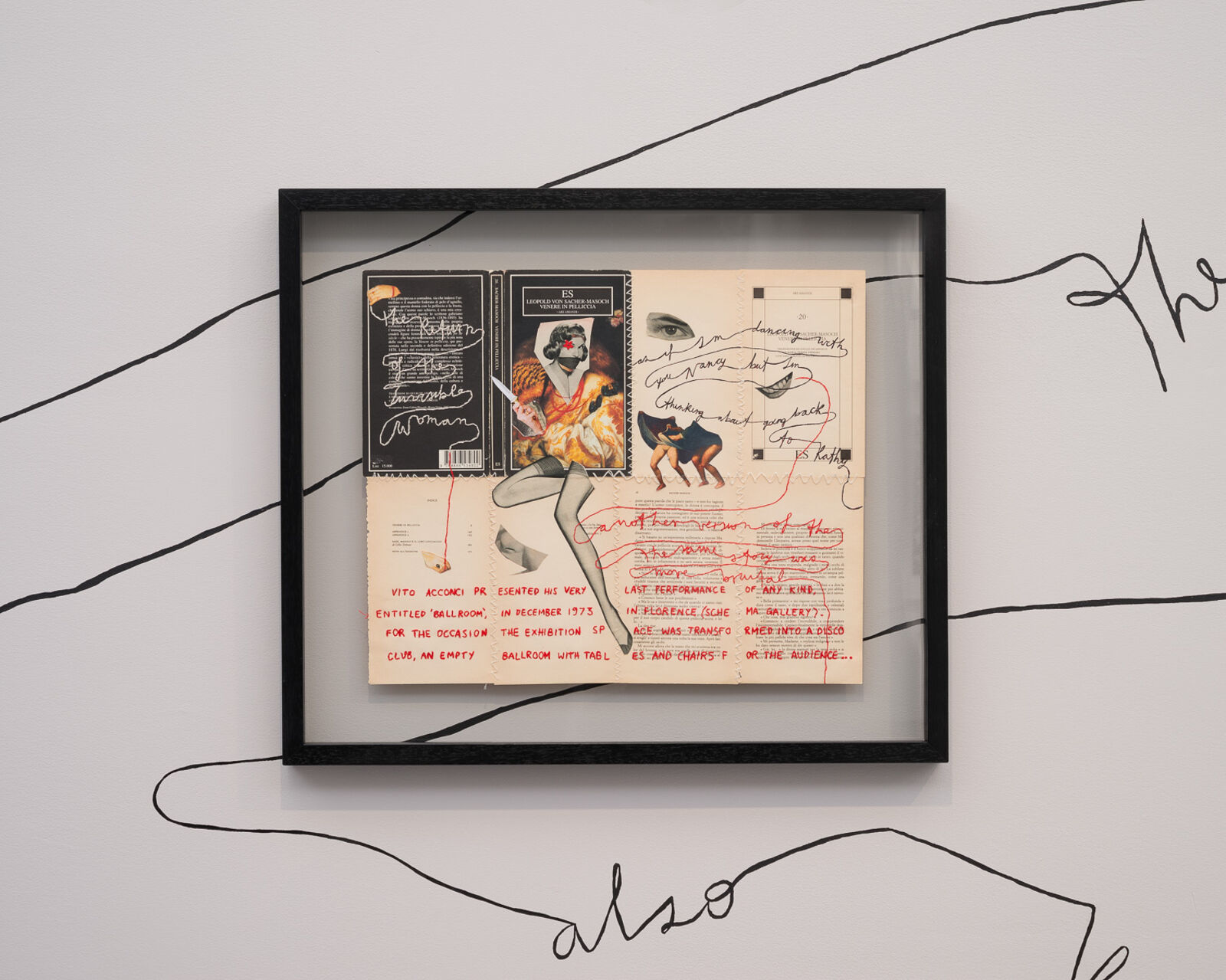 Chiara Fumai, ‘The Return of the Invisible Woman (also known as ‘Visites fantastiques de Vito A. au pays du fouet')', 2014, collage and embroidery on Sacher-Masoch's 'Venus in Furs', wall painting, courtesy of the artist and A Palazzo