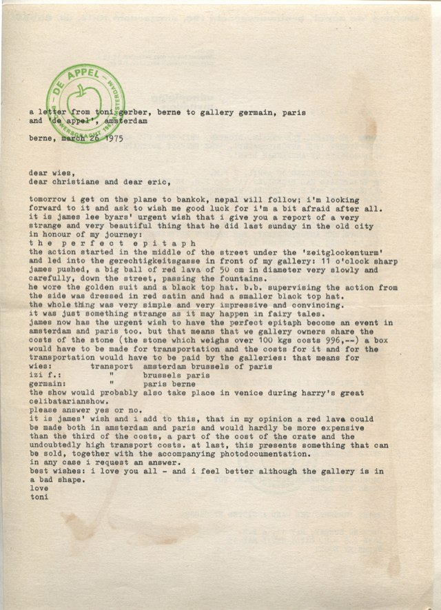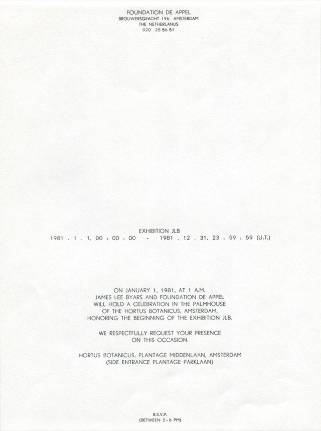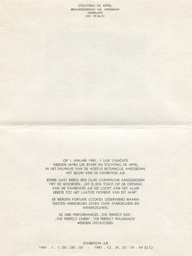 James Lee Byars β The autobiography, The perfect epitaph, The 25 philosophers of Amsterdam live, I do nothing, The wand, archive