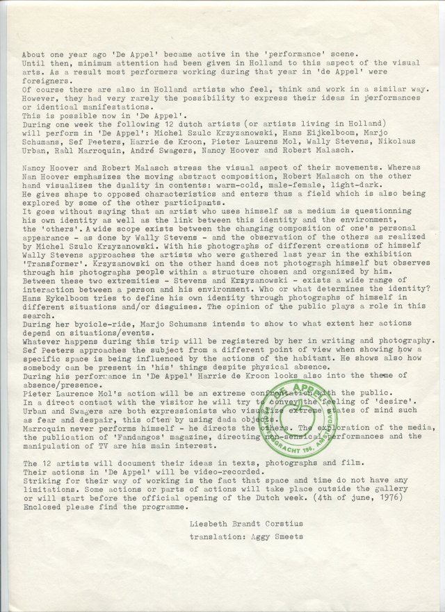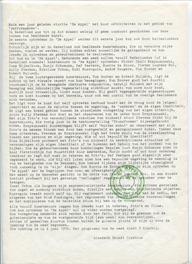 General invitation with program schedule of the Hollandse Week performances and presentations