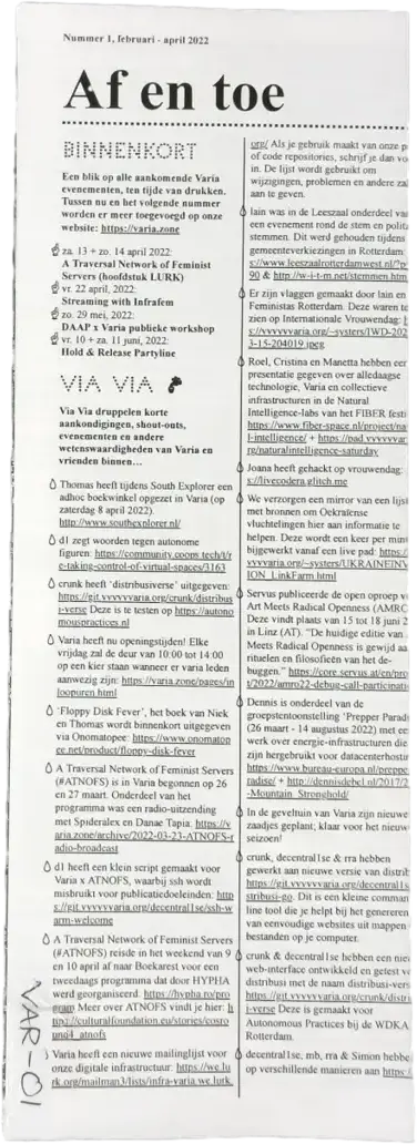 varia - nummer 1, februari-april 2022 - Af en toe