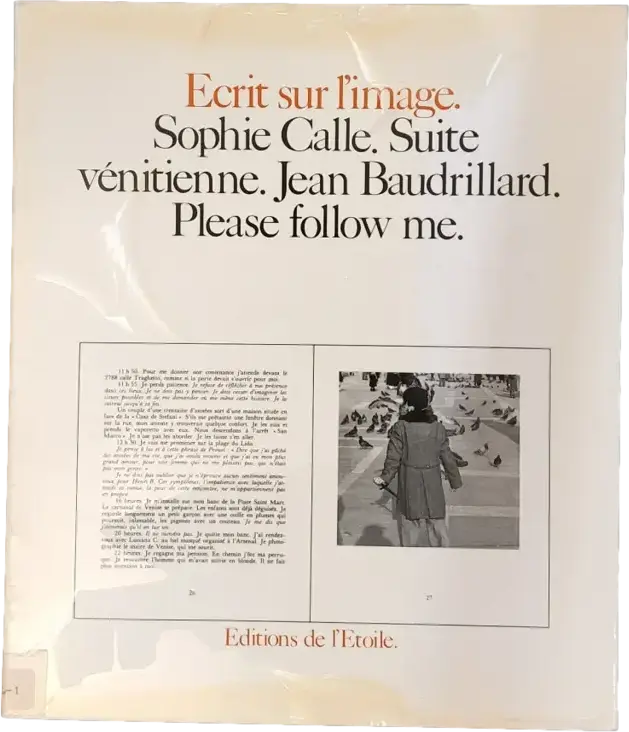 Sophie Calle – Ecrit sur l’image. Suite Vénitienne, Jean Baudrillard. Please follow me