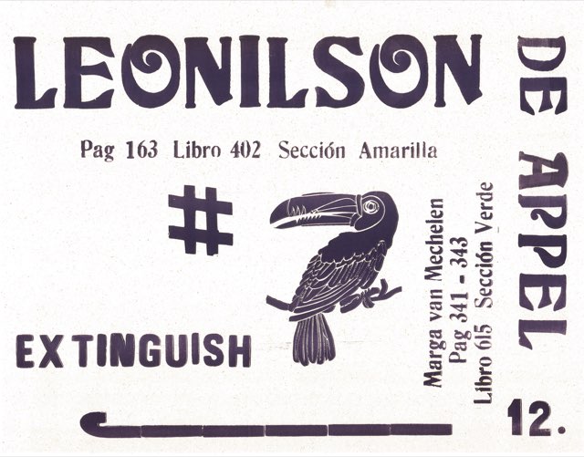 After an invitation by Calipso Press to make a project in the documentation center of Lugar a Dudas, Martin La Roche proposed to initiate a Ch'aekkôri. For this purpose the hints of the Quick crossword Nr 13.692 were suggested as new categories for reorganizing the library. 44 books were assigned to the new scheme and for communicating this, a group of posters were designed and printed by the artist at a local typesetting and printing workshop called 'La Linterna', that had one of the oldest street poster tradition in the city. All the wooden ‘clichés’ used to print the icons or shapes on the posters, came from the printing workshop's collection and were hand carved for previous commissions.