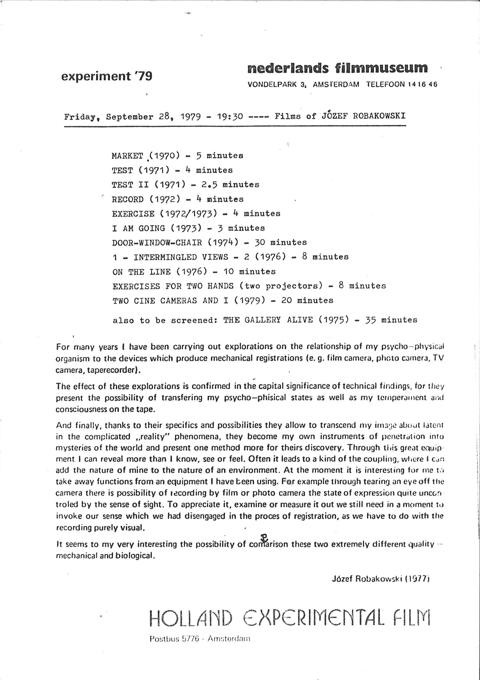 De Appel website is presenting the film Gallery Alive on the occasion of the reprint of the Works and Words catalogue. This work by famous Polish artist Józef Robakowski from 1975 sketches a fascinating picture of the local avant-garde in that period. It shows how closely contemporary art was connected with cinematic experiments, in Łodz (Poland) mainly through the famous 'Workshop of the Film Form' (WFF). Gallery Alive consists of short fragments in which Robakowski gave a free hand to several artists. The resulting assembly film gives a dynamic picture of the diverse artistic visions of the most important Polish artists of the 1970s and is an important cinematic document of this "scene". Finally, by renouncing his role as director, Robakowski deconstructs the filmmaker's authority and places the collective in the foreground that engages various creative voices and perspectives within a cinematic whole. The catalogue of Works and Words is republished by Roma Publications and De Appel on the occasion of ( Footnotes # 3 ). On Tuesday evening, October 9, De Appel, in collaboration with EYE Film Museum, presents the book launch of the publication in Amsterdam with an evening of films, talks and a performance that puts the original Art Manifestation in the spotlight. Tickets available through the EYE website. The screening of Józef Robakowski's Gallery Alive celebrates the launch of the reprint of the Works and Words catalogue and will be on display from 2 October to 31 October 2018. See also ( Footnotes #3 Works and Words ) ( Works and Words; Revisiting Film as/and art from 1970's Eastern Central Europe )