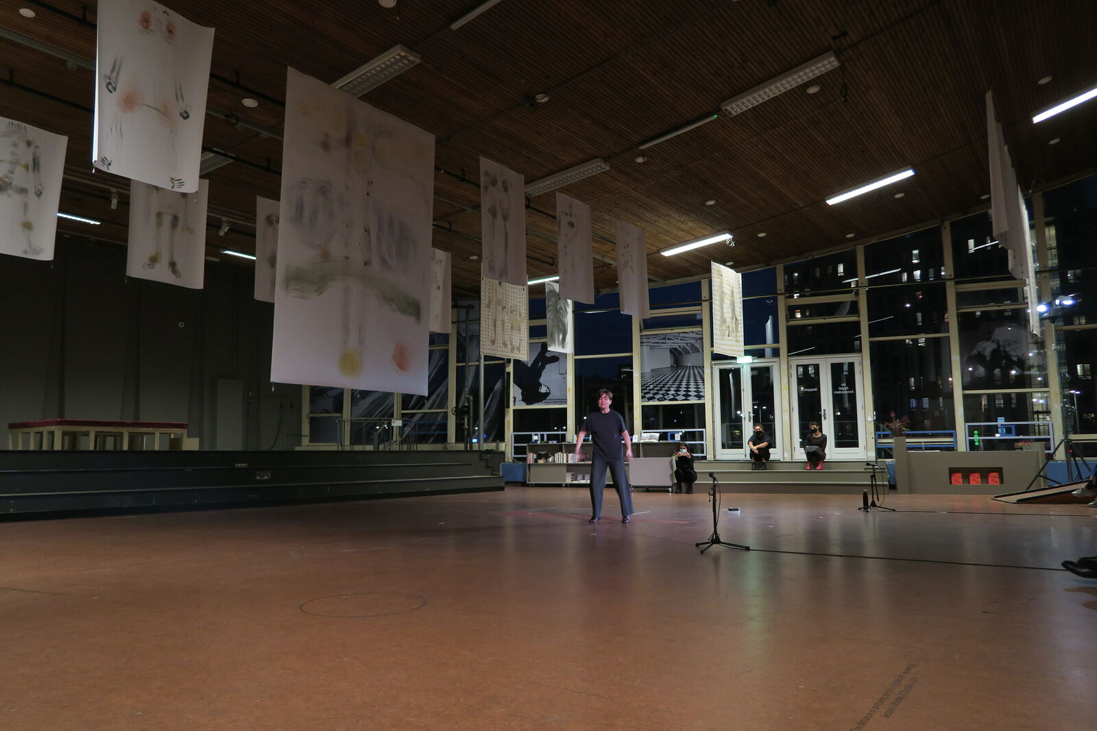 During the exhibition, materials from the evolving history of performance art dating back to the 1970s, found in de Appel’s Archive, add depth and historical context to Sagri's pivotal practice. As this evocative ephemera enters into a dialogue with Sagri’s modular stage-sculpture and full-bodied drawings. Here, a number of questions arise: