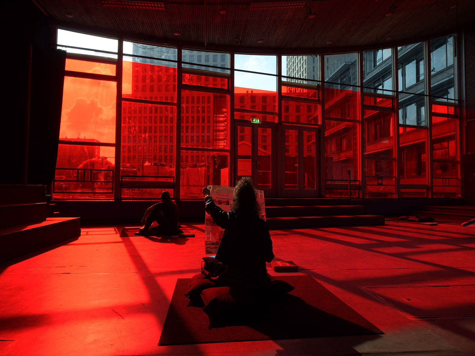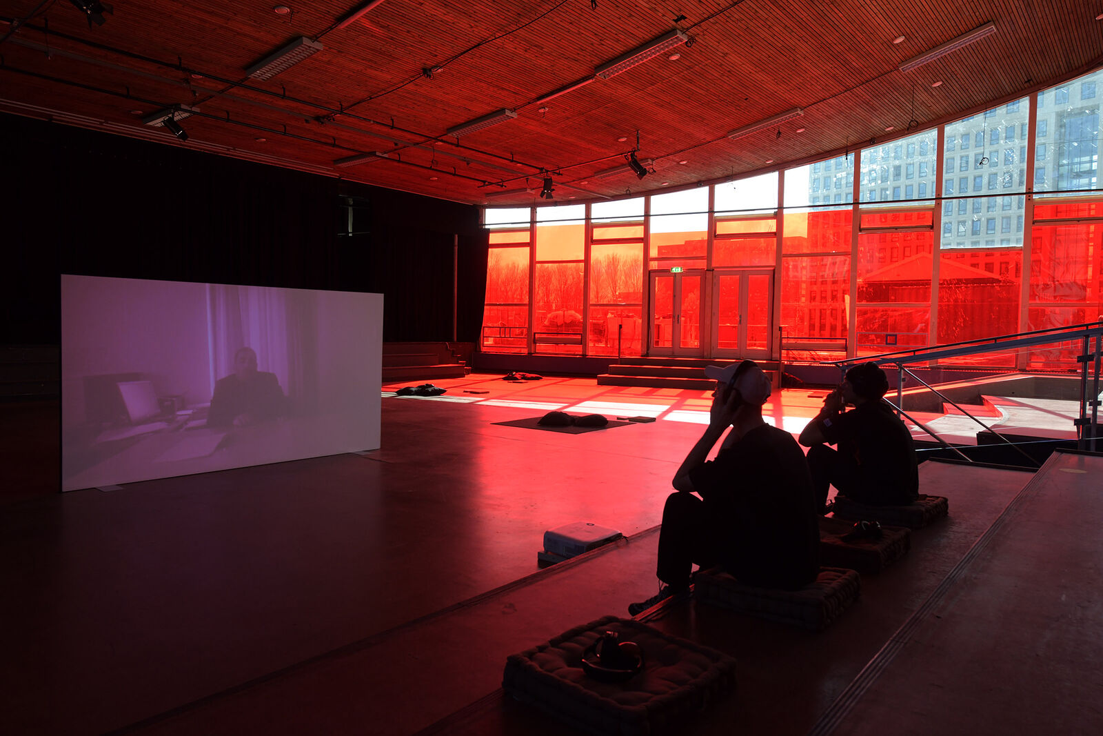 Three different works will be traversing the Aula of de Appel. We No Longer Prefer Mountains (2023) takes place in the Druze town of Dalyet el Carmel, in northern Palestine, pulling the viewer into a surreal world of geographic isolation, shrouded mysticism, and a locale shaped by co-optation, coercion, and control. Weaving together intimate engagements with members of the community, in shared domestic spaces and outdoor environments, the film sets out to explore how the inner politics of the Druze have been controlled and reshaped as a result of the establishment of Israel in 1948. The film is informed by the landscape theory (fûkeiron), a Japanese Avant Garde film movement in the 60s whereby the filmmakers posited that filming the everyday surroundings reveal the oppressive and repressively isolating landscapes and the powers at play.