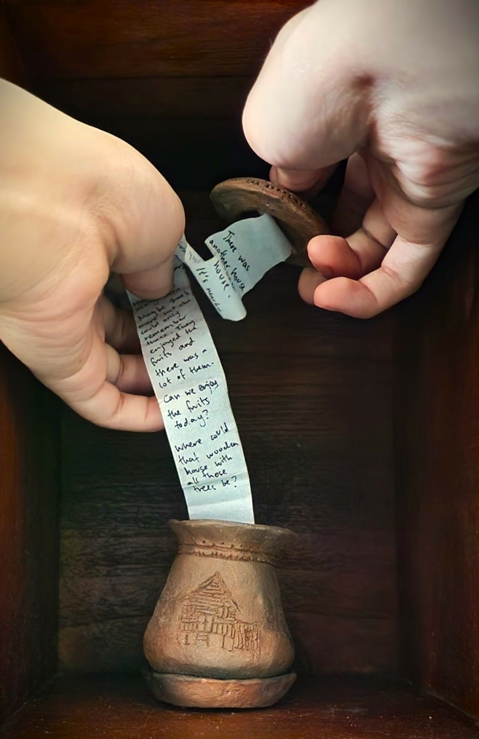 For the exhibition "Als je me echt zou kennen…” Ain will present her work Home Pots: Series Pasu Pertama, part of her "Re-Learning Workshop" Project 2022. Ceramics is a common material for archiving stories and the series is inspired by this traditional craft, peculiar to the region where Ain comes from. The drawings and engravings depict the houses where her family previously lived. The patterns on the pots are applied to translate stories into visual symbols. This work is an invitation to the Teenage Curators and visitors to their exhibition to add their stories through drawings, audio stories and ceramic work.