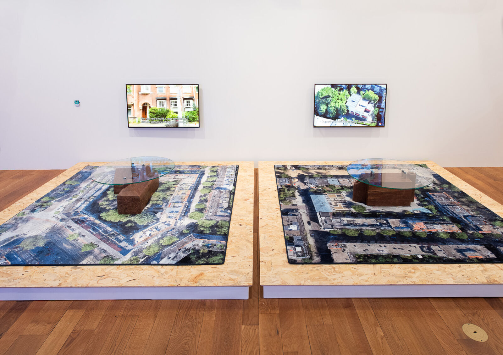 Suat Öğüt (b. 1986, Diyarbakır) lives and works in Amsterdam and Izmir. Öğüt will show his interactive work "The Future of the 'Me-nemen-Mory” for this exhibition, inviting visitors to discover some of Amsterdam's hidden, silent and forgotten places. In his work The Future of the 'Me-nemen-Mory,' he depicts the unheard and invisible stories of residents. The installation consists of wooden models of Amsterdam school buildings, set down on carpets, with Google -images of the actual locations. The installation functions as a space between domestic and non-domestic environments. In that space, he listens to the stories of residents. According to Öğüt, Turkish communities affirm their cultural existence by adapting to each new location - with stores, markets and other businesses, including in Amsterdam.
