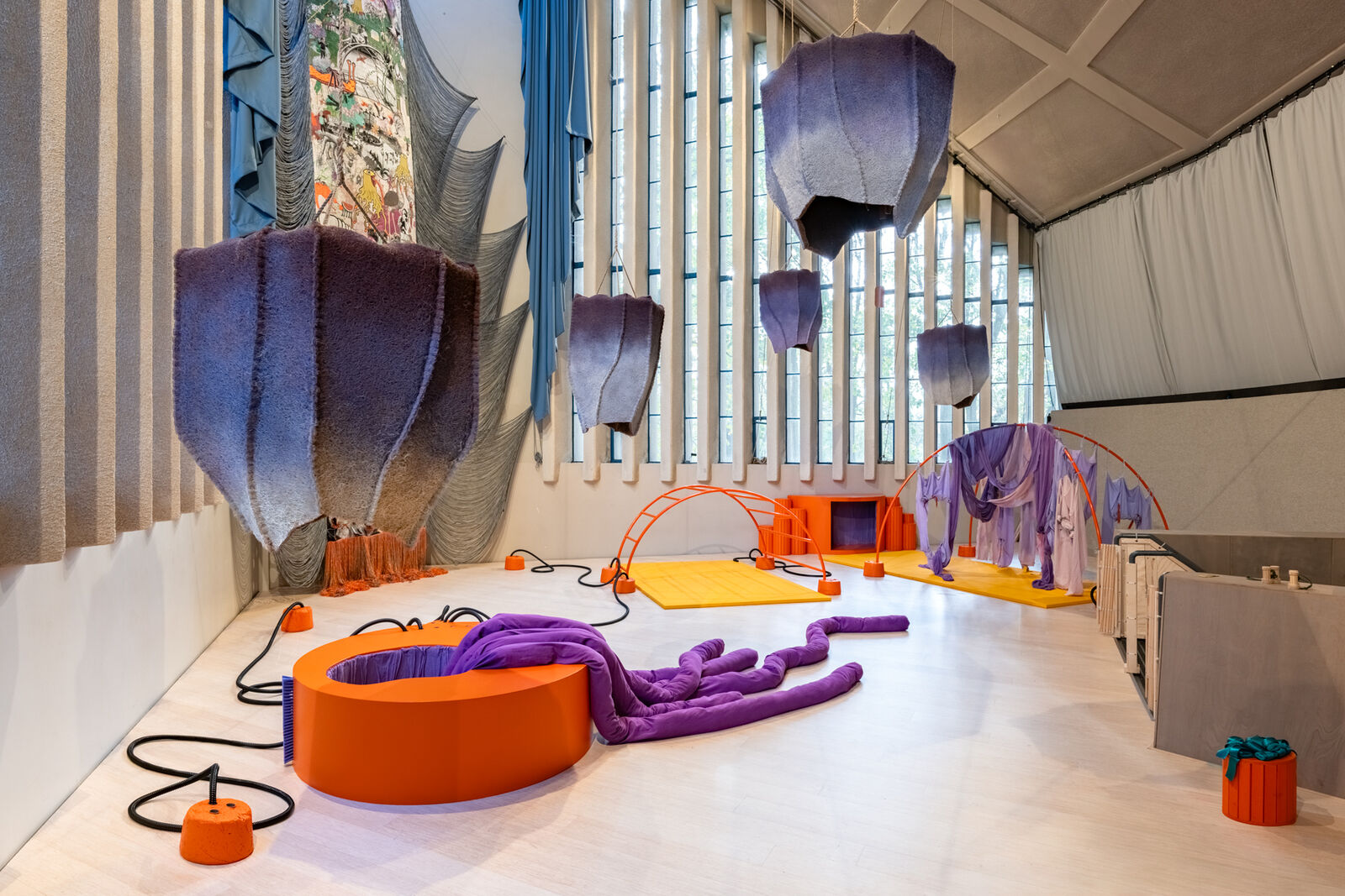 de Appel presents CaccHho CucchhA, a scenographic exhibition by Mercedes Azpilicueta that treats play as invention, disobedience, and commons making. Commissioned by de Appel, the project unfolds as an immersive ecosystem of modular sculptural costumes, play platforms and a large tapestry, activated through an ongoing series of workshops with children, families, and invited collaborators. CaccHho CucchhA is part of de Appel’s long-term commitment to embedded art and mutual learning, as well as hosting children and caregivers into the centre of artistic life and rethinking what behaviors, and whose tempos are supported in cultural spaces.