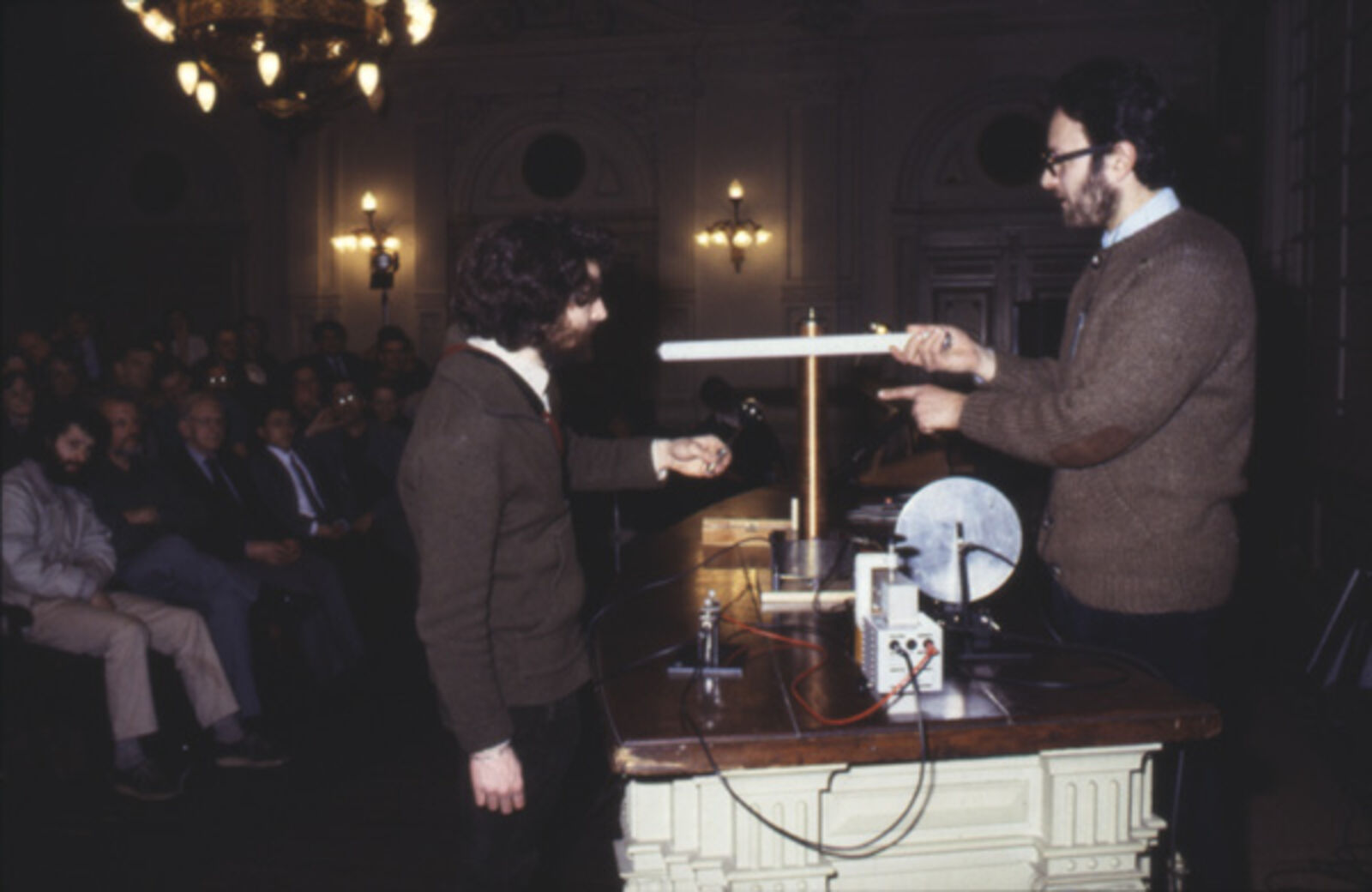 ‘Along with Archimedes and Thomas Edison, Nikola Tesla (1856-1943) is one of the greatest inventors and engineers of all time. Tesla's creative mind was endowed with quite exceptional inventive and imaginative capabilities. It should be emphasized that he was never hasty about starting concrete work. When he got an idea, he could construct it in his imagination and was able to operate the device mentally so as to make changes and improvements. ‘For me, it is absolutely immaterial’, he once said to a friend, ‘whether I test my turbine in my thoughts or in my shop. I can even check whether or not it is out of balance.’ Thus he was able to complete the conception stage of his inventions without the need for experimentation and to give his ideas a mental concreteness which may indeed refer to Michelangelo's claim that each lump of stone has a certain sculptural form hidden within itself. The method taken by Tesla's art of making scientific apparatus was very similar to the process involved in the creation of an inspired work of art. Mentally and emotionally, he was entirely and acutely focused on this unique world of strange ideas which was accessible only to him. His description of the semiconscious moment of falling asleep is deeply indicative and significant: ‘When I close my eyes, I invariably observe first a background of a very dark and uniform blue not unlike the sky on a clear but starless night. In a few seconds this field becomes animated with innumerable oscillating flakes of green, arranged in several layers which advance towards me. Then, to the right, there appears a beautiful pattern of two systems of parallel and closely spaced lines. They are at right angles to one another and in all sorts of colours, with yellow-green and gold predominating. Then the lines grow brighter and the whole effect is thickly light. This picture moves slow I y across the field of vision and after about ten seconds vanishes to the left, leaving behind a ground of rather unpleasant and inert grey which quickly gives way to a billowing sea of clouds, seemingly trying to mould themselves into living shapes. It is curious that I can not project form into this greyness until the second phase is reached. Every time, before I fall asleep, images or people or objects flit before my eyes. When I see them, I know that I am about to lose consciousness. If they are absent or refuse to come, it means a sleepless night.’ (N. Tesla, 'My Inventions', Electrical Experimenter, New York 1919) Tesla was not a mere engineer or simply an inventive scientist as he is usually portrayed today. He was more of an old-fashioned wizard or alchemist since, as is obvious, his ideas originated from a source of the most profound yet historically unrecorded and still undiscovered wisdom. Thus, an enigma remains forever and only a part of the background to this work can be elucidated.’ (Velimir Abramovic, ‘The method of Tesla’, Newsletter De Appel, 1 (1986) 1.)