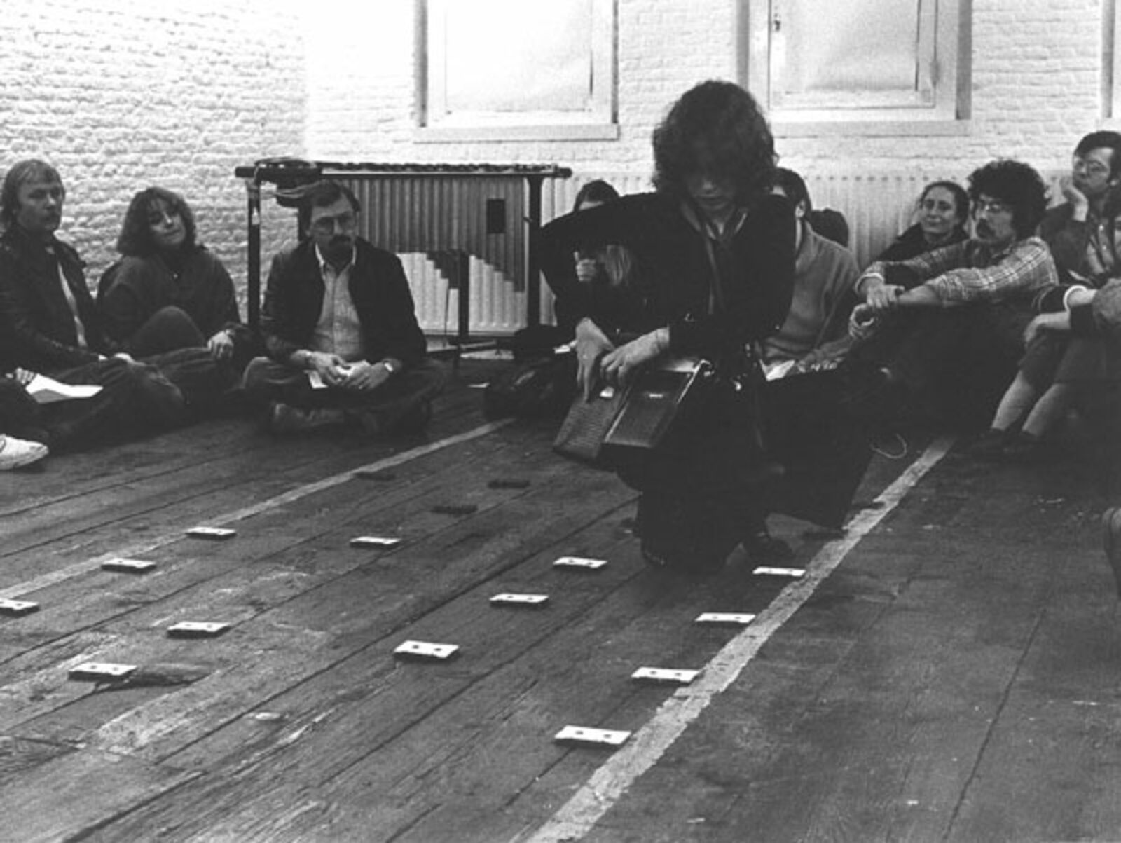 ‘In her music, Connie Beckley is concerned with different musical components such as time, space and movement. She does this in a way that could be described as ‘music for music’s sake’. While the subject may remain constant, she often changes her medium. The music can therefore be perceived through a medium such as theatre or dance and sometimes through a medium related to a painting. Sound is often important in her music, but her ways of expressing a musical idea are very varied so she does not regard sound as indispensable.’ (Invitation De Appel, February 1978.)