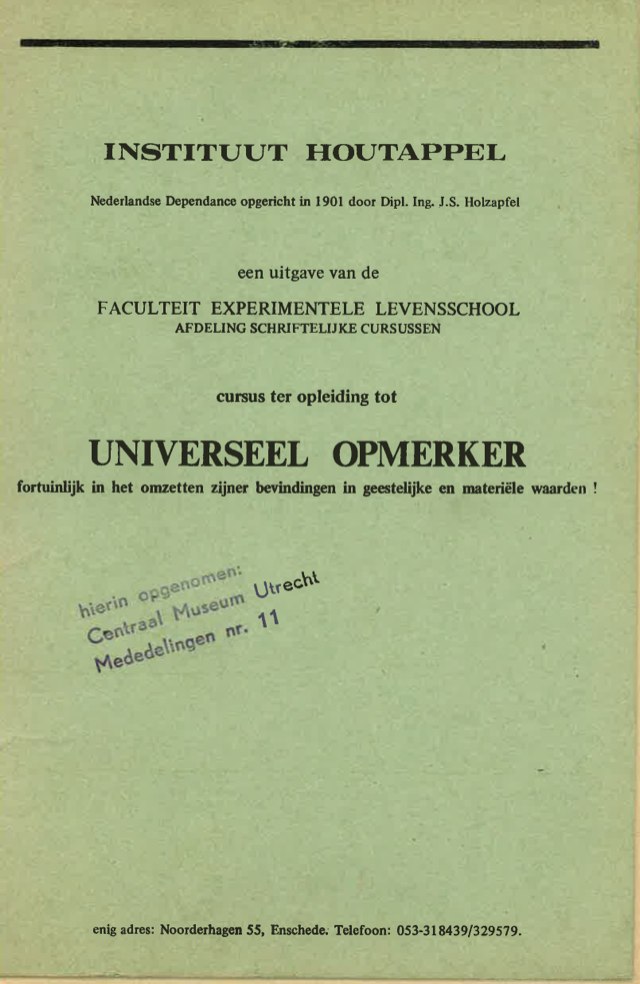 Instituut Houtappel – Een uitgave van de Faculteit Experimentele Levensschool Afdeling Schriftelijke Cursussen – Cursus ter opleiding tot Universeel Opmerker