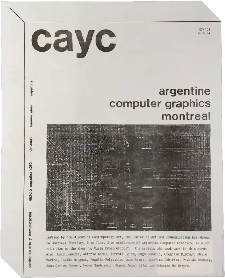 - CAyC Centro de Arte y Comunicación, Buenos Aires, 1974