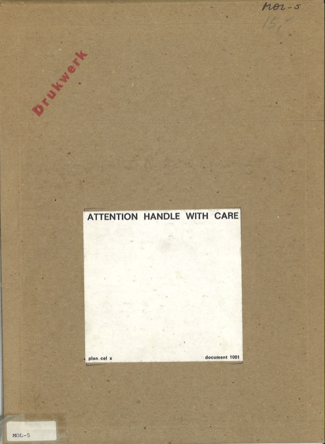 Postcard - Outside of card which was folded to postcard format. Within the text βIk zou je ogen willen kussenβ (I would like to kiss your eyes) which was revealed when the sealed card was opened. The artist personaly adressed five hundred of these cards to friends and people from the Appel mailing list, as part of his work during the Hollandse Week.