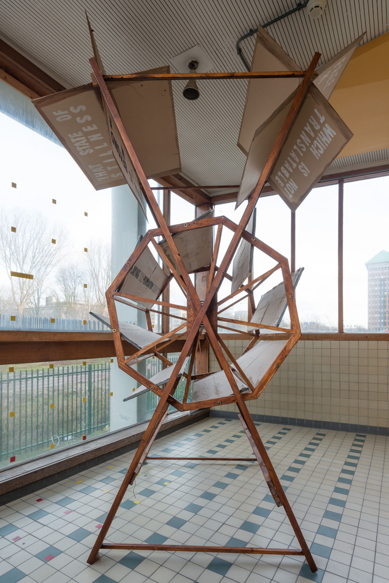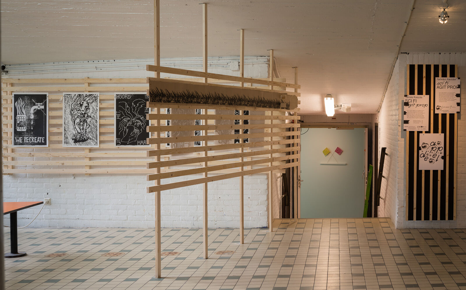 SCI FI AGIT PROP vindt gelijktijdig plaats in Netwerk Aalst en De Appel Amsterdam en sluit aan op de stedelijke context van beide instellingen: enerzijds de gentri catie waarvan Amsterdam Nieuw-West getuige is, en anderzijds de post-industriële context van Aalst. Hoe verandert onze blik op deze stedelijke gebieden wanneer Tamás er een alternatieve realiteit voor bedenkt?