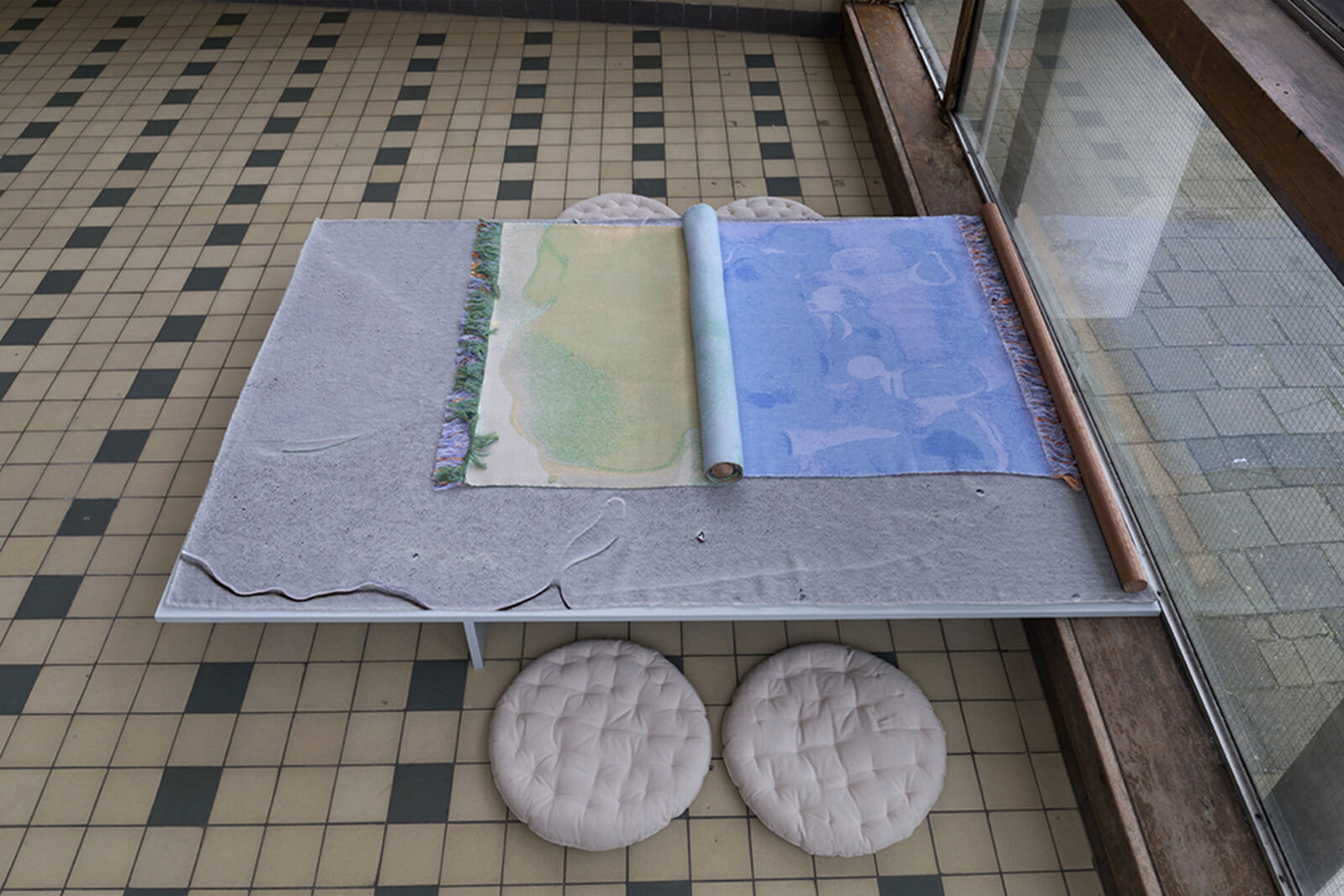During 24H Nieuw–West, many participants have made similar photogrammes with Sloterplas water, broadening Waveness’ perspective to include fresh waterbodies and questions of human control.* Four of these prints have been scanned and woven into jacquard fabrics, as part of the installation.