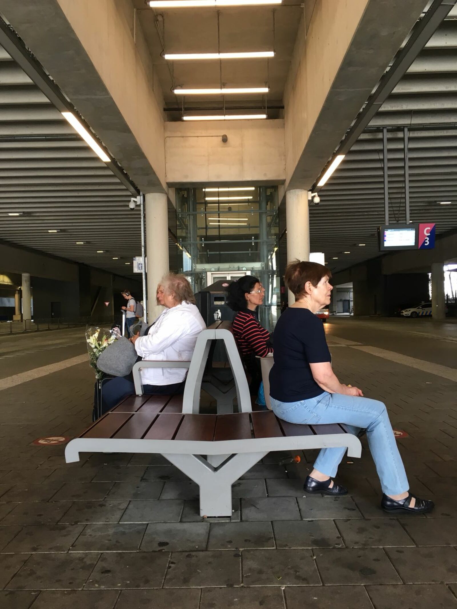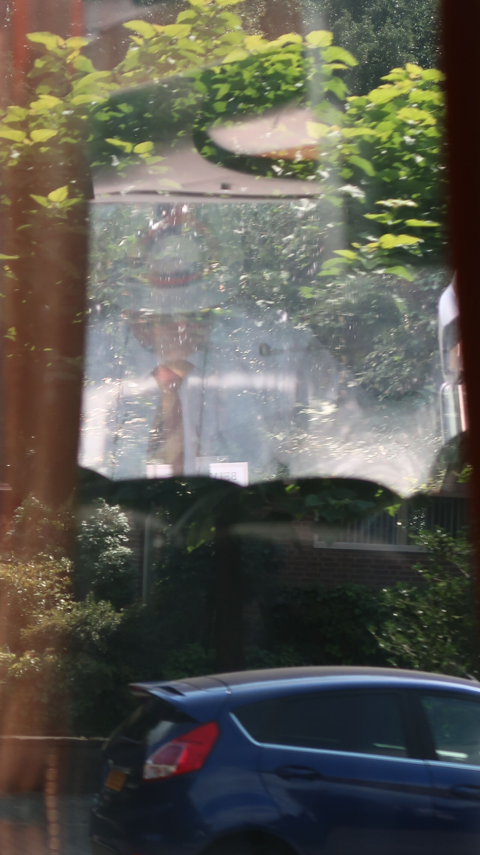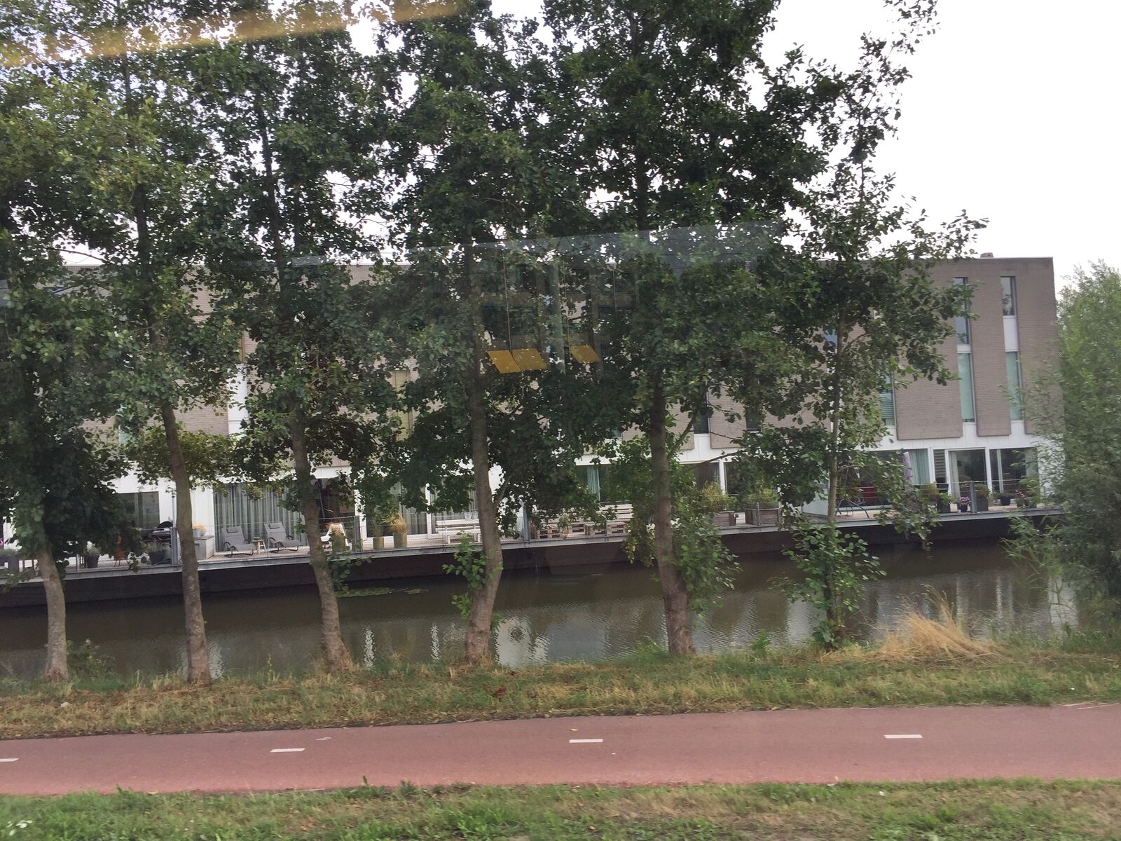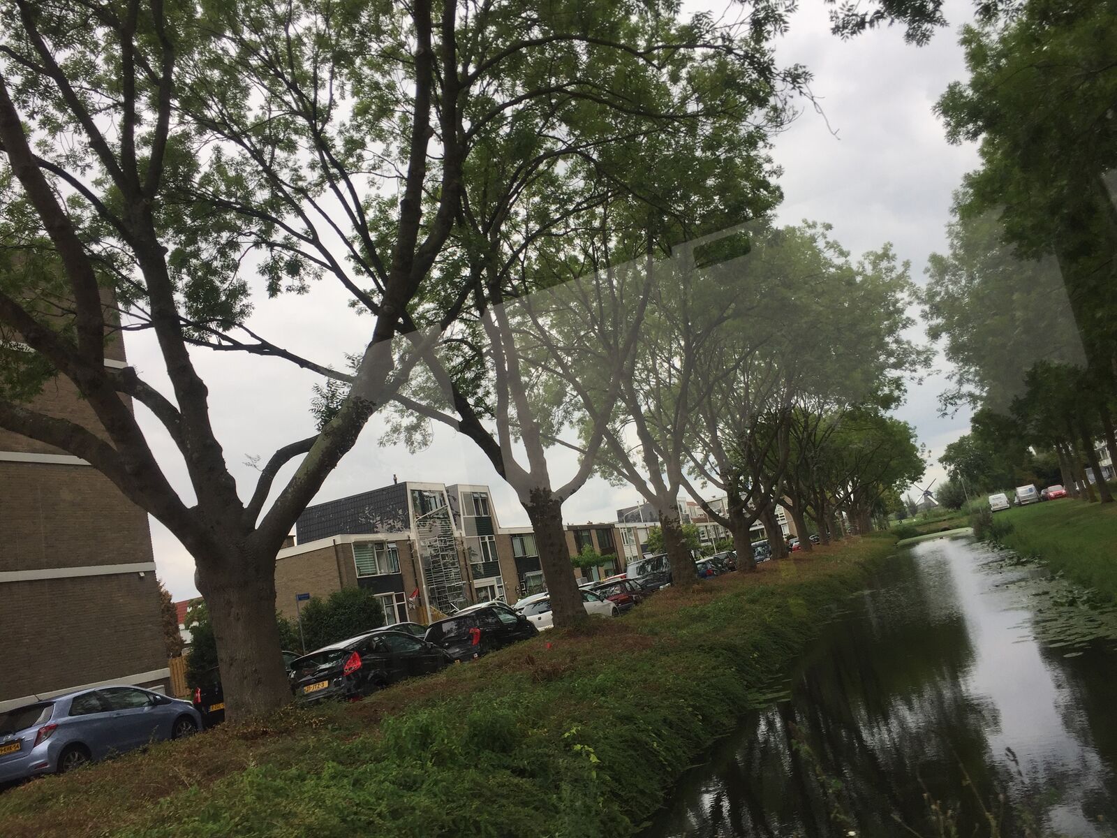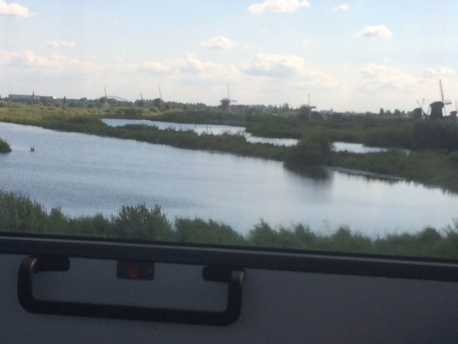 We nemen een bus met een niet kloppend busnummer en komen op het platteland terecht. Buiten weilanden en plukjes goed onderhouden huizen omgeven door kort geknipt gras, groepjes bloemen en geschoren buxus bollen. Binnen voornamelijk passagiers uit de streek, omgeven door een giga airco ruis. Achter me spreken twee hip geklede Aziaten Bahassa. Waar bevinden we ons? ….. iets wat ik me voor de zoveelste keer afvraag. Ineens zie ik uit het raam heel veel Aziaten in het polderlandschap. Busstop Kinderdijk: de Indonesiërs stappen uit. Wíj stappen pas uit bij de pont over de Lek naar Schoonhoven. Van de Voice moeten we nu vreemde muntstukken in de rivier gooien, maar het wisselkantoor in de hal van het oude CS Rotterdam bestaat niet meer.