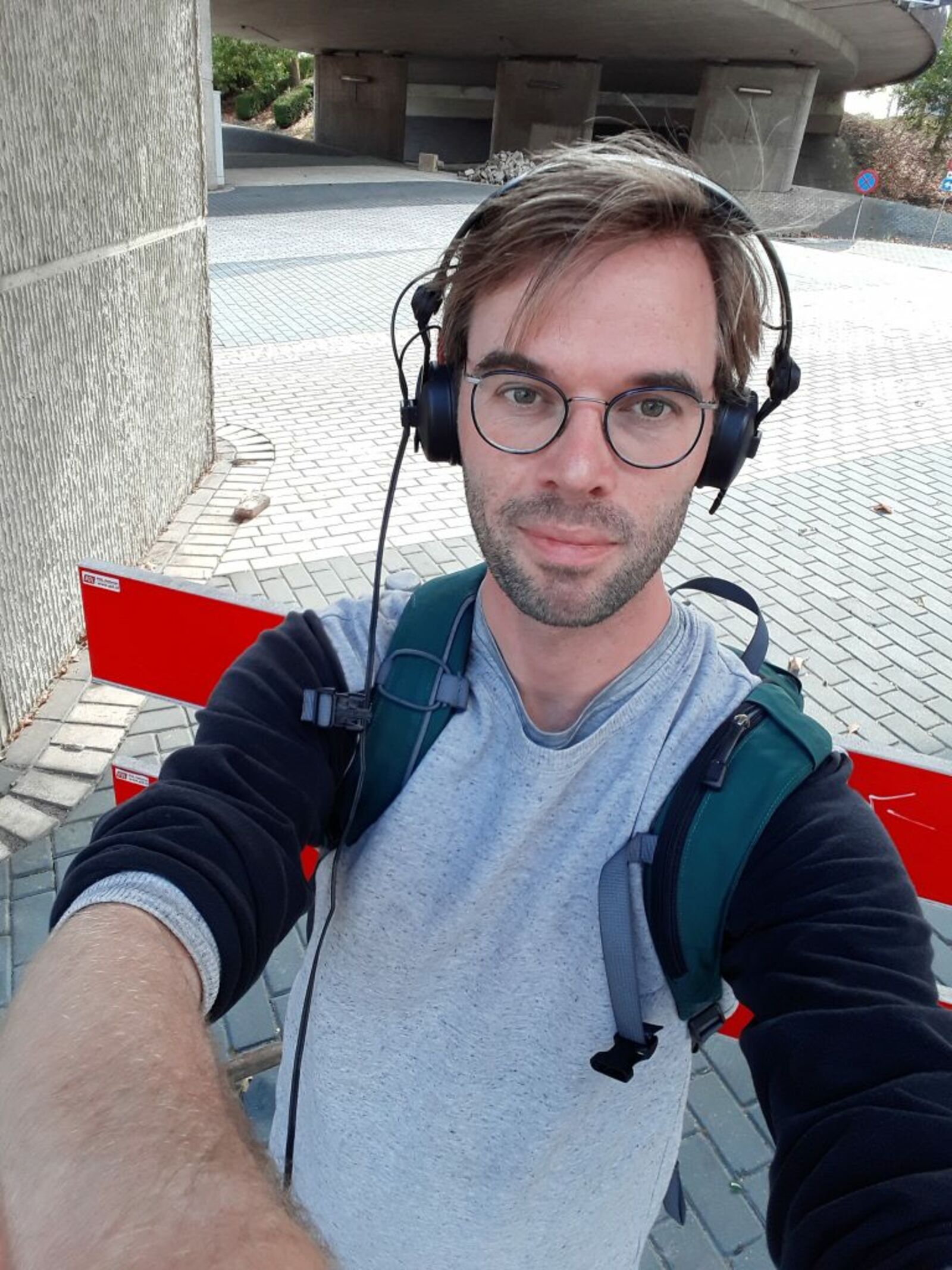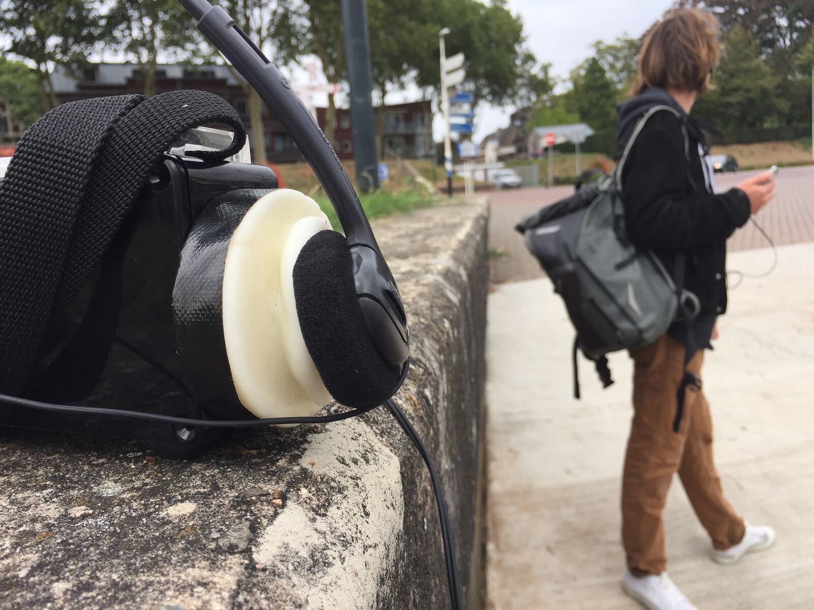 A fragment of a binaural sound recording, made with an Earbox: a recording of The Walk including the surrounding sounds of that moment (it’s best to listen with head phones only)