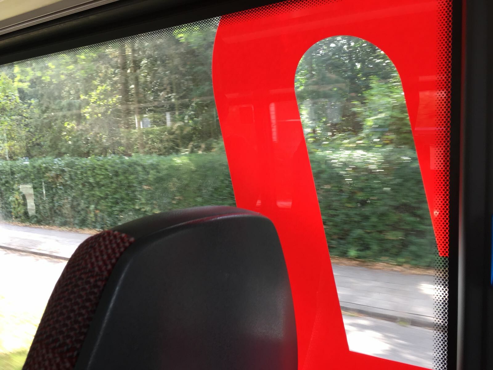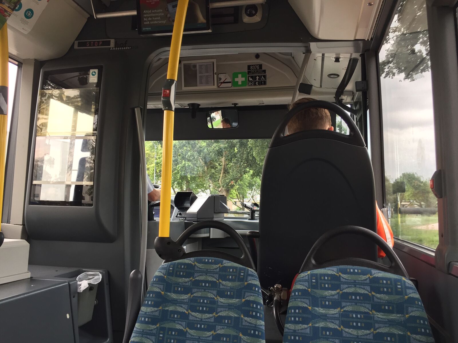 Op de opgehoogde achterbank in de nieuwe bus met fluisterzachte airco rijden we langs alweer een aaneenschakeling van weiden, akkers, rotondes, plukjes nieuwbouwwijken met 90% strakke tuintjes, beelden gekleurd door een variatie aan elektronische muziekjes, vrouwenkoren, mondharpen en soms iets klassieks. The Voice praat nog steeds, maar dringt niks op. Het zijn voornamelijk aanwijzingen met hier en daar een voetnoot. Vooral dat maakt de ervaring zo tijdloos.