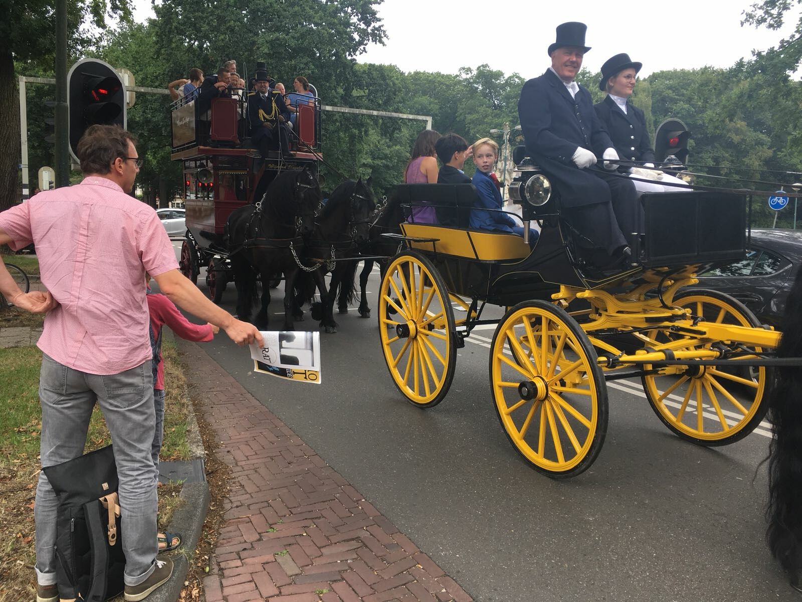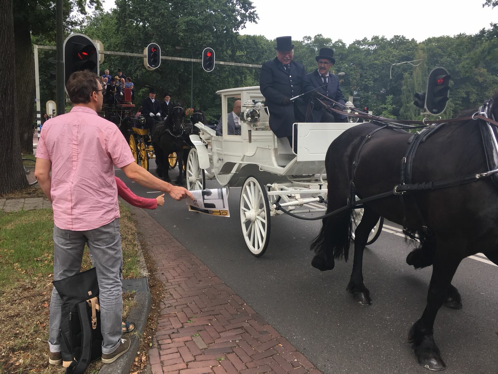 We lopen langs buitenwegen, rotondes, ruisende bomen en zaterdagmiddag verkeer. Verderop ligt de bushalte naar Utrecht. Tijdens het wachten word ik geïnterviewd door Femke van Radio Ja Ja Ja Nee Nee Nee. Ik mag de Ridder een vraag stellen. Ineens klinkt de stem van The Voice live op de iPhone aan mijn rechter oor, mono, nadat ik uren naar zijn veertig jaar jongere stem over de koptelefoon heb geluisterd. ‘T verschil ontroert me.