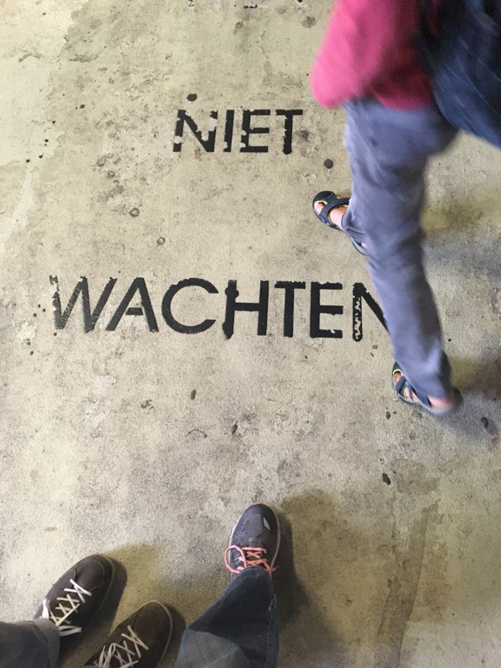 IN FRONT - UP - DOWN Vertrek 10.00 - 10.30 - 11.00 - 11.30, En we reizen door 12.00 - 12.30, 13.00 - 13.30 - 14.00, Bestemming beweegt zich in een andere frequentie 16.00, Even pauze gehad in Wageningen 16.00 - 16.30 - 17.00, Onze reis eindigt in Arnhem. Maar niet helemaal, we reizen nog terug naar Rotterdam. De treinen rijden niet allemaal. De route stuurt ons direct terug naar Ede-Wageningen. Dan met de bus naar Utrecht…. 17.30 - 18.00, Zijn jullie er nog? 18.30 - Rotterdam 19.00, Eten 19.30