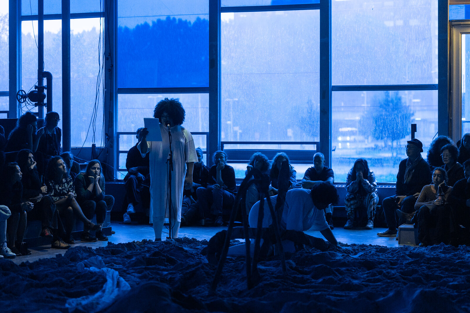 sinking could be, opening performance door Jota Mombaça en Tessa Mars, 2022, episode 1 van super feelings, de Appel Amsterdam. Beeld: Maarten Nauw