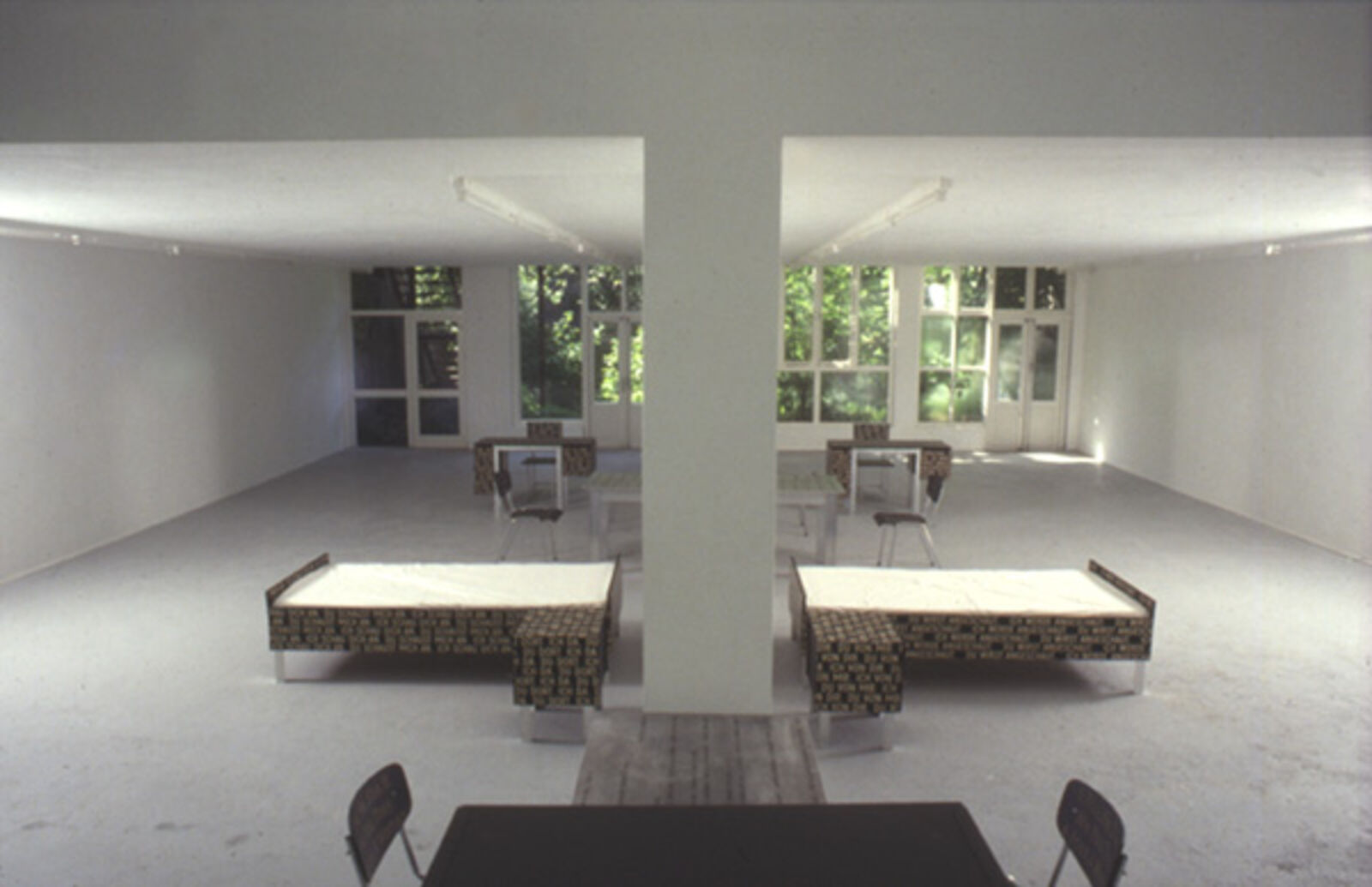 V.v.n.a.: Kleine Hermeneutik des GesprĂ€chs, 1991, Zwei Betten und zwei NachtkĂ€stchen, 1991, Kleine Hermeneutik des Schweigens, 1992, Zwei StĂŒhle, 1991, Zwei Schreibtische mit zwei StĂŒhlen, 1992