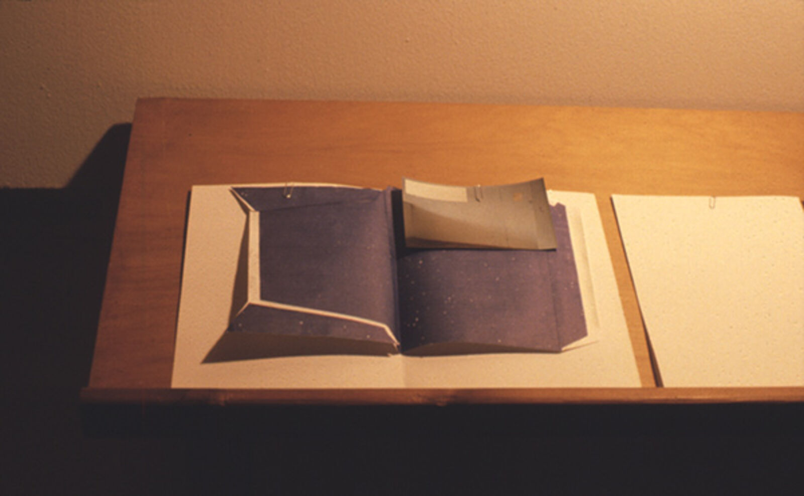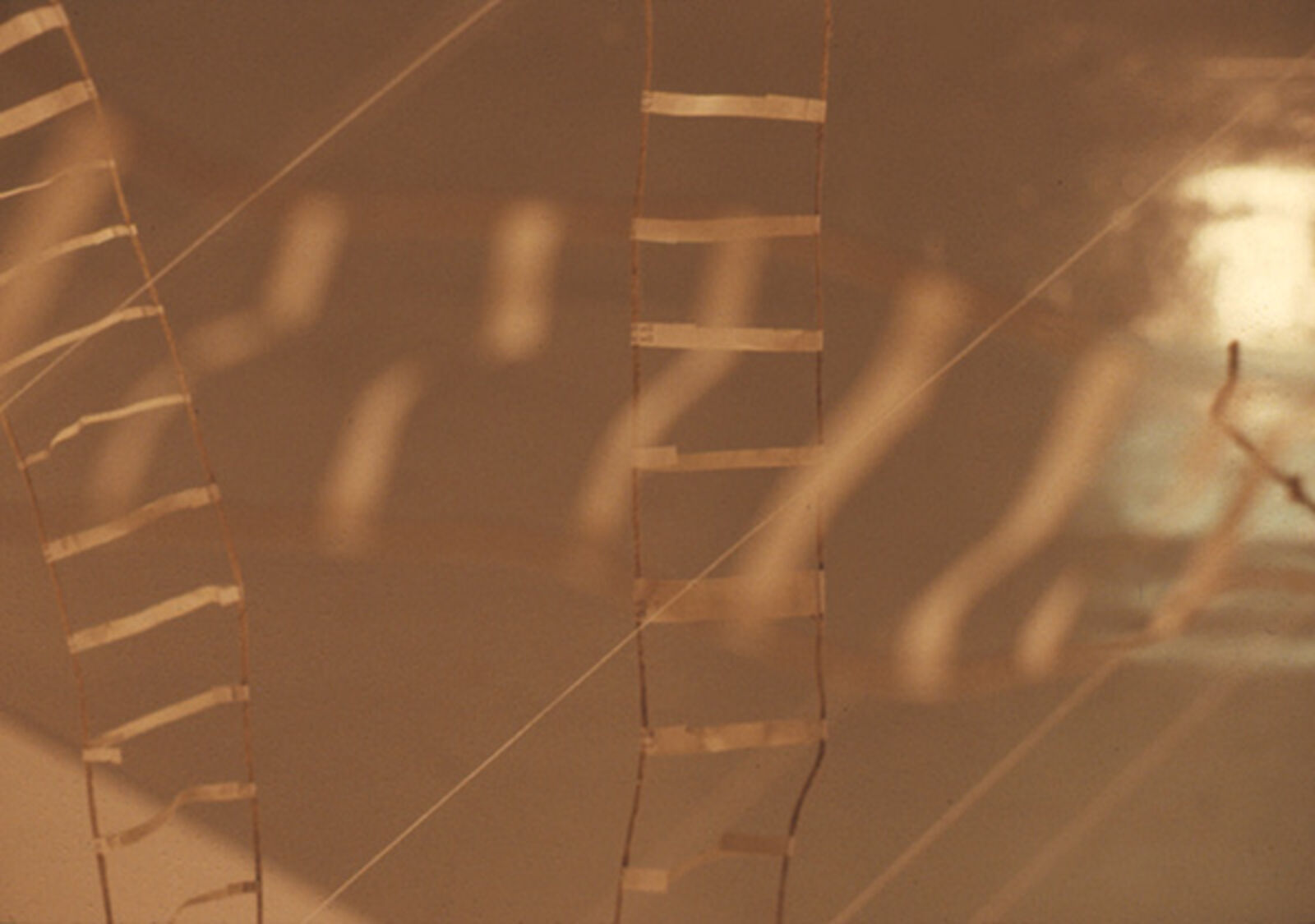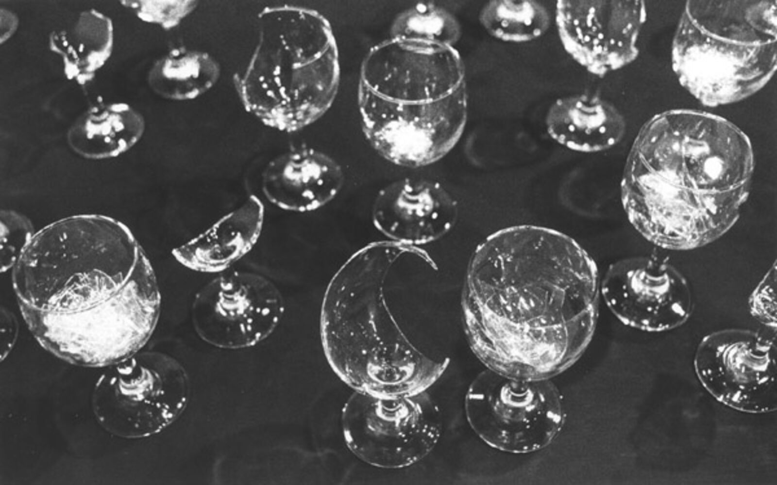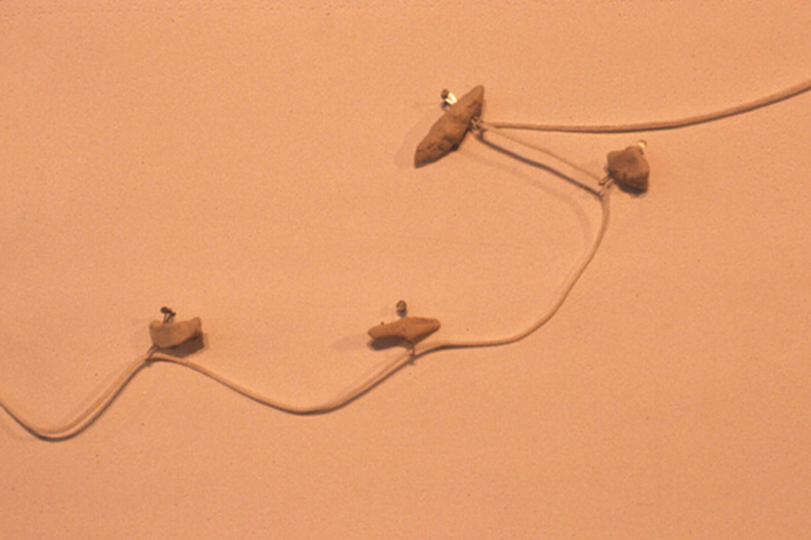 Nikolaus Urban: Paws and comets: installatie op wand en vloer bestaande uit foto's van kometen, een met klei ingesmeerde lus van touw en een sculptuur van dierenklauwen. Glass Installation: Broadway, Broadway... Installatie van wijnglazen op een tafel. Van de twee aan twee gerangschikte glazen is steeds één heel en één gebroken. De glassplinters zijn verzameld in de hele glazen. (12-24 november, Franklin Furnace)