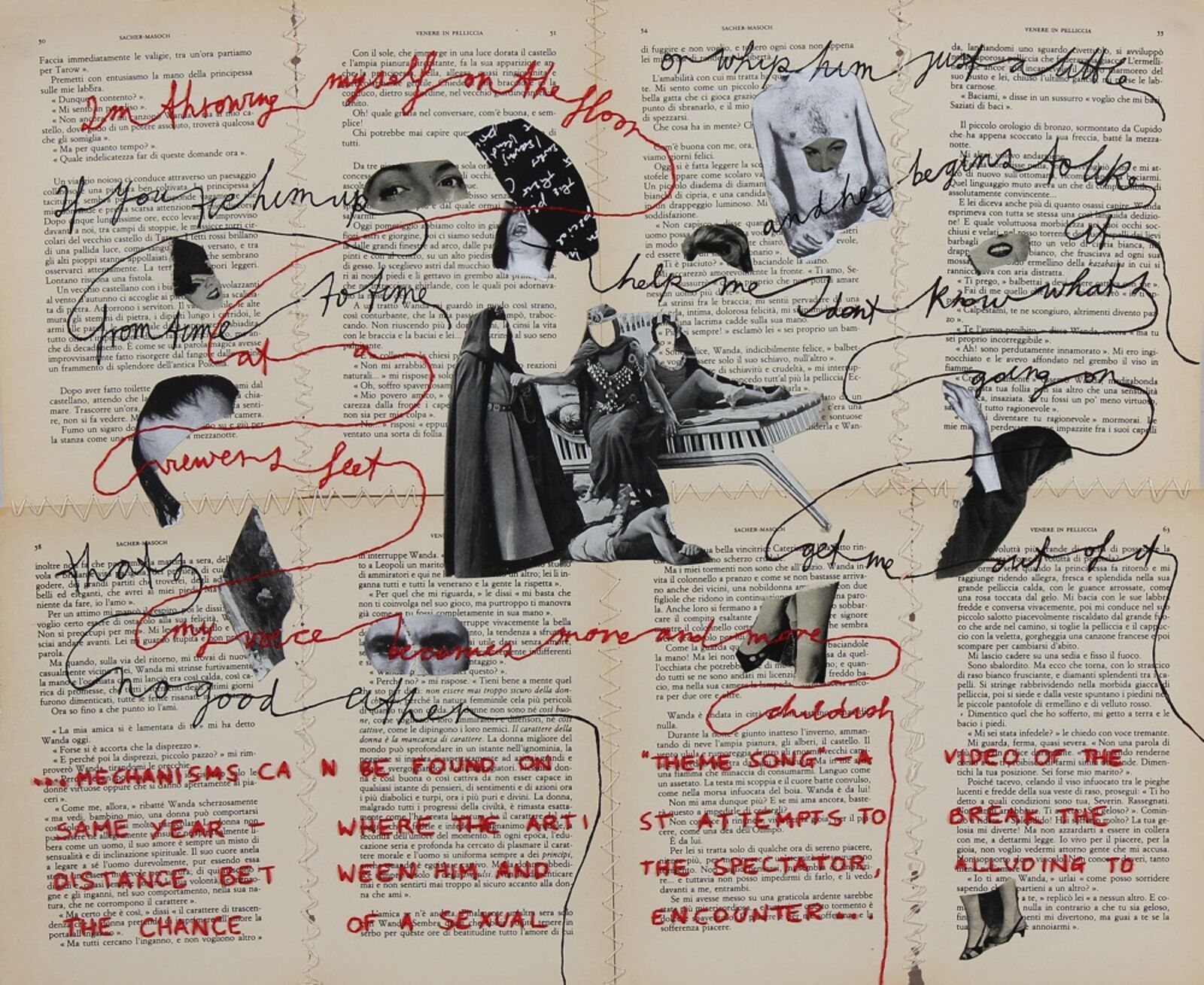 Chiara Fumai, ‘The Return of the Invisible Woman (also known as ‘Visites fantastiques de Vito A. au pays du fouet')', 2014, collage and embroidery on Sacher-Masoch's 'Venus in Furs', wall painting, courtesy of the artist and A Palazzo