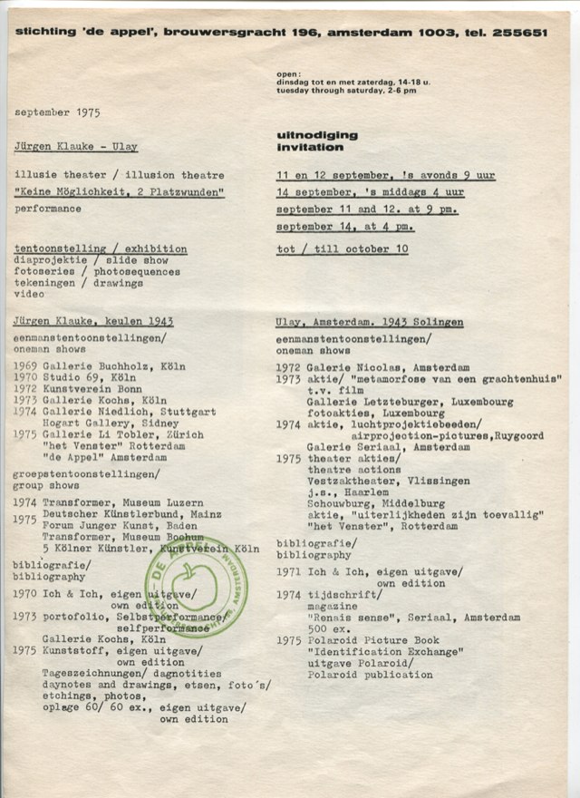 - Jürgen Klauke, Ulay – Keine möglichkeit, 2 Platzwunden