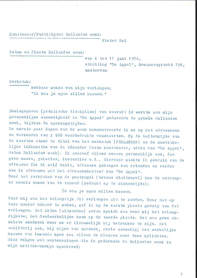 Text by Pieter Laurens Mol about his performance Verlangend at Hollandse Week