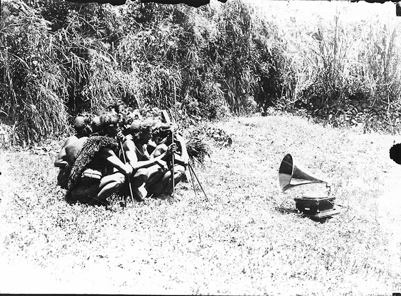 Image from The Dean C. Worcester Photographic Collection at the University of Michigan Museum of Anthropology (Massachusetts Institute of Technology, Visualizing Cultures) / dw08f021: In addition to taking photographic images, Worcester and his colleagues also recorded Filipino voices. But visual accounts of Filipinos using Western technologies—as in this image of a phonograph—often suggested the cultural inferiority of Filipinos.