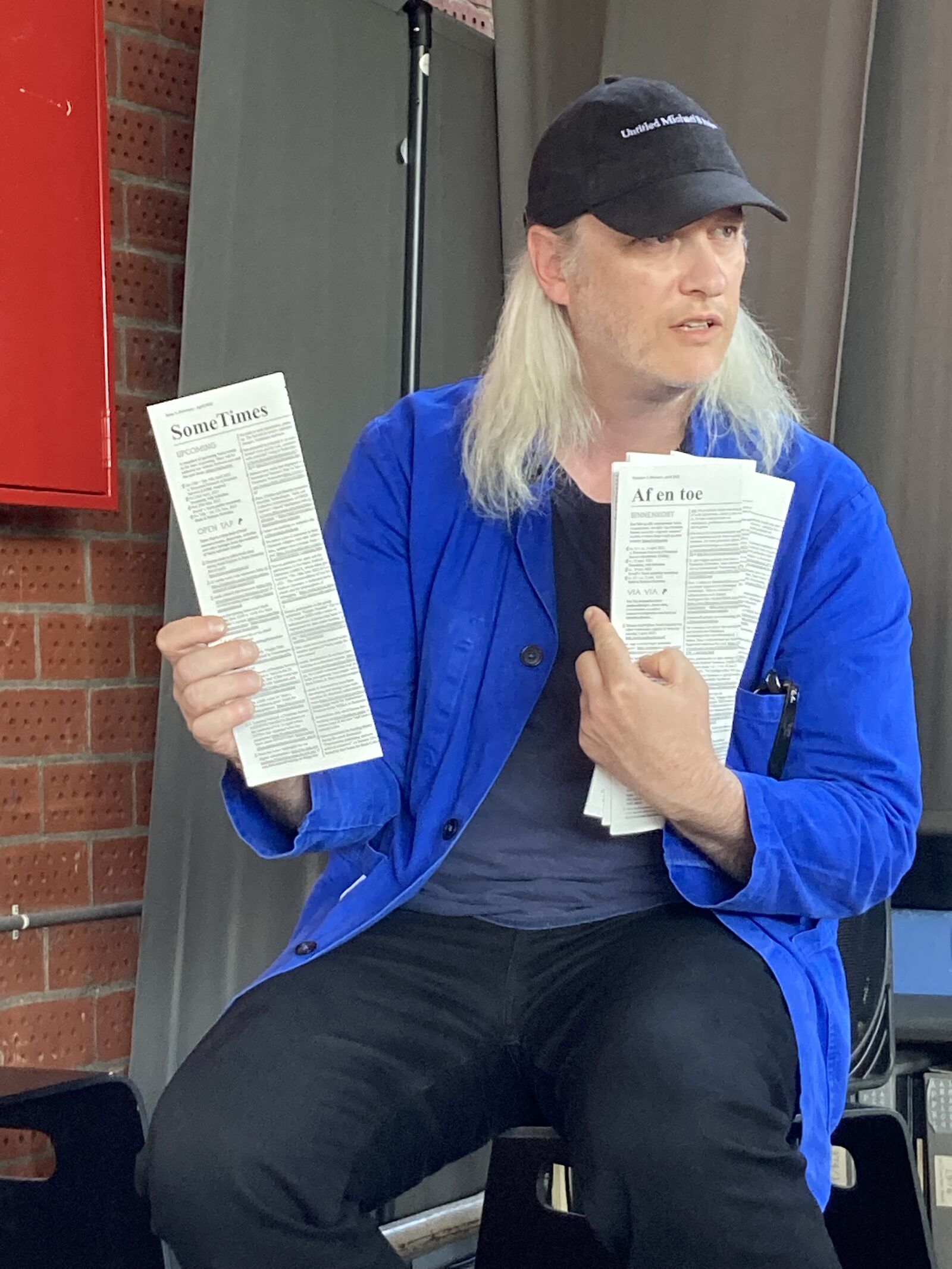 SB: Hi, Iām Simon, I am also a Varia member and Iāve got some of these here today. Which are made with these tools that one of the Varia members developed. So this is our first printed newsletter in English and sometimes in Dutch.